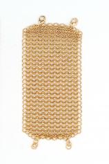 Bratara handmade este realizata prin impletirea zalelor de culoare auriu lucios intr-un tipar inspirat din armurile medievale.